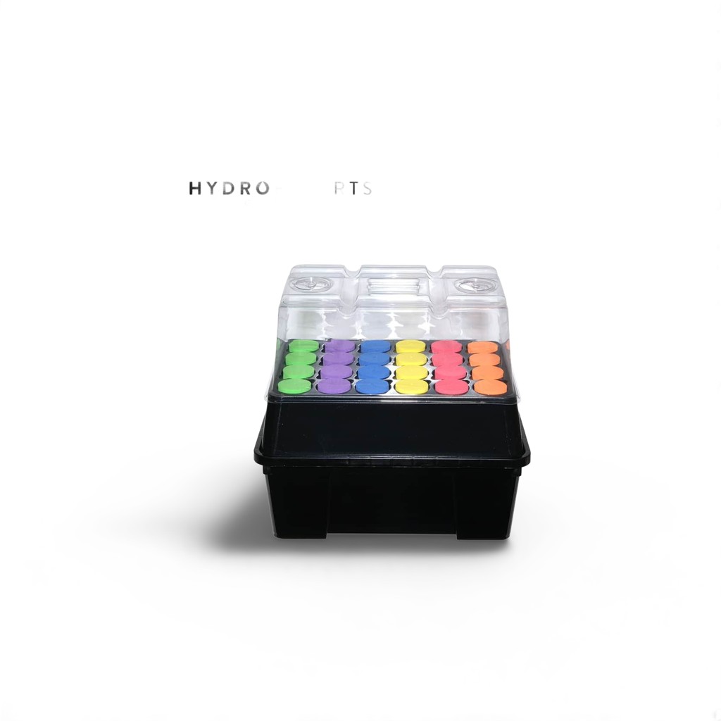 An aeroponic cloner for up to 24 cuttings. This system works by misting water to the root zone allowing for a high amount of oxygen helping to improve success rate.